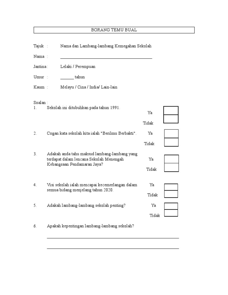 Cara buat borang soal selidik geografi. Contoh dan cara buat borang soal selidik tugasan kajian lapangan geografi pt3 tahun 2019. Contoh dan cara buat borang kaji selidik tugasan geografi pt3 tahun 2016 berikut adalah panduan gambaran di antara format borang kaji selidik bagi kerja kursus geografi pt3 tahun 2016 serta contoh perkara perkara yang perlu ada dalam borang soal selidik tersebut. Contoh borang temubual soal selidik kerja kursus pt3 geografi 2020 info cara buat borang soal selidik tugasan geografi pt3 yang terbaik. Berikut dikongsikan contoh borang soal selidik geografi pt3 2018 yang boleh dijadikan panduan dan rujukan buat pelajar dalam menyiapkan kerja kursus folio geografi pt3 2018.