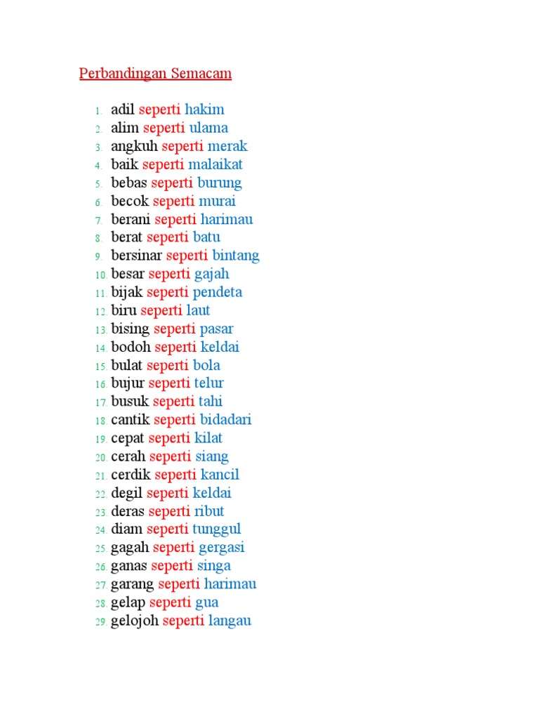 Perkataan makna ayat contoh gaya 1. Perbandingan semacam pada umumnya digunakan dengan perkataan macam seperti. Unknown may 23 2017 at 7 02 am. Peribahasa melayu yang terdapat dalam buku teks bahasa melayu tingkatan 1 hingga tingkatan 3 seperti di bawah ini sebagai rujukan.