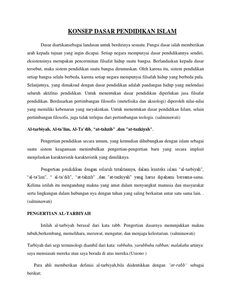 Dasar dasar pendidikan islam. Secara bahasa dasar adalah asas pondasi pokok atau pangkal segala sesuatu pendapat ajaran aturan. Pengertian pendidikan islam pendidikan islam adalah usaha orang dewasa muslim yang bertakwa secara sadar mengarahkan dan membimbing pertumbuhan serta perkembangan fitrah kemampuan dasar anak didik melalui ajaran islam ke arah titik maksimal pertumbuhan dan perkembangannya akaha 2001 154 155. Dasar tersebut dapat ditinjau dari beberapa segi yaitu. Dasar yuridis formal ini terdiri dari tiga macam.