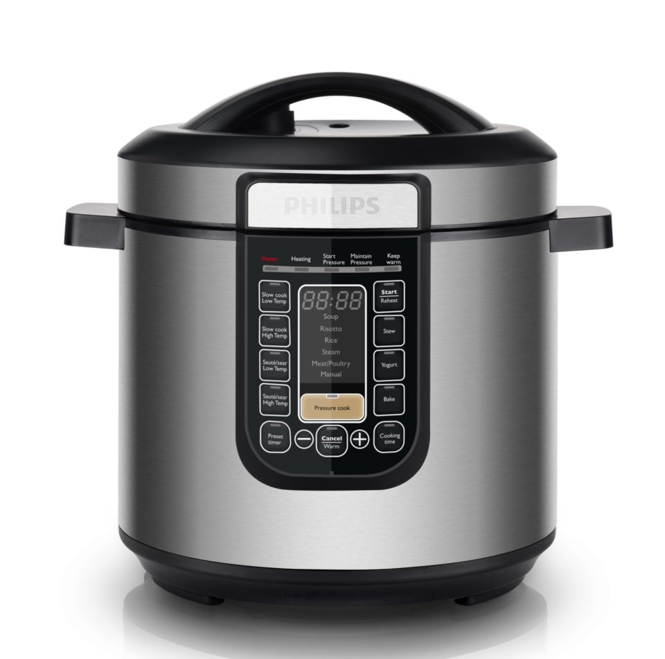 With an 8l capacity cooking a great meal and even a feast for a big family or guests has been made simple by the noxxa electric multifunction pressure cooker. Many of these multi cookers now come with a preset timer so you can start cooking before you go to work. The 6l electric pressure cooker is made from top quality stainless steel to be durable. With the philips intelligent cooking system you can slow cook pressure cook and multi cook all in the one machine.