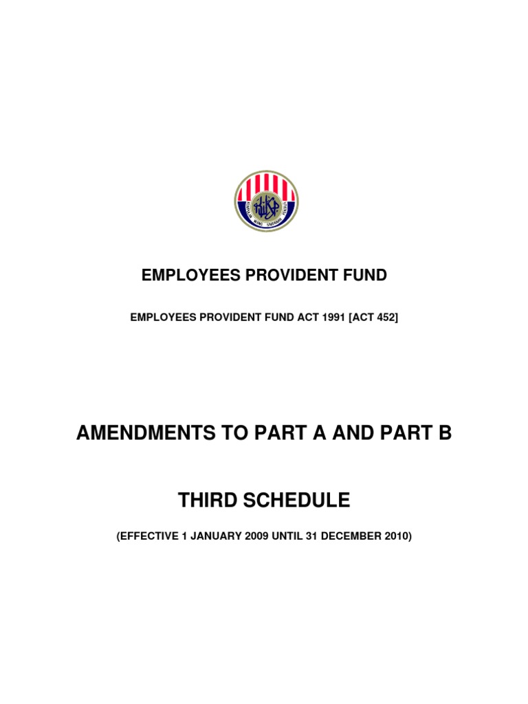 Laws s of 1955 25 of 1958. 1 this order may be cited as the employees provident fund amendment of third schedule order 2004. 1 june 1991 p u. 2 this order comes into operation on 1 june 2004.