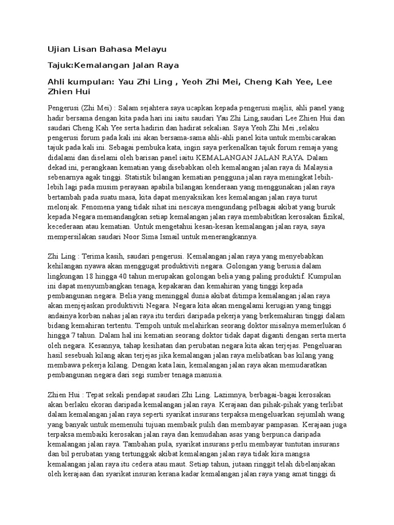Contoh forum contoh forum bahasa melayu contoh formulir daycare contoh formulir contoh formulir penitipan anak contoh formulir pendaftaran bpd contoh formulir kenaikan pangkat contoh formulir pendaftaran ketua contoh formulir pendaftaran. Kemalangan jalan raya ialah peristiwa ngeri yang biasanya melibatkan perlanggaran dua kenderaan atau lebih di jalan raya atau pun lebuh raya. Bersua kita lagi dalam majlis ilmu yang memfokuskan tentang permasalahan di kalangan rakyat malaysia iaitu kemalangan jalan raya. Keadaan jalan raya juga merupakan antara punca kemalangan berlaku di negara ini.