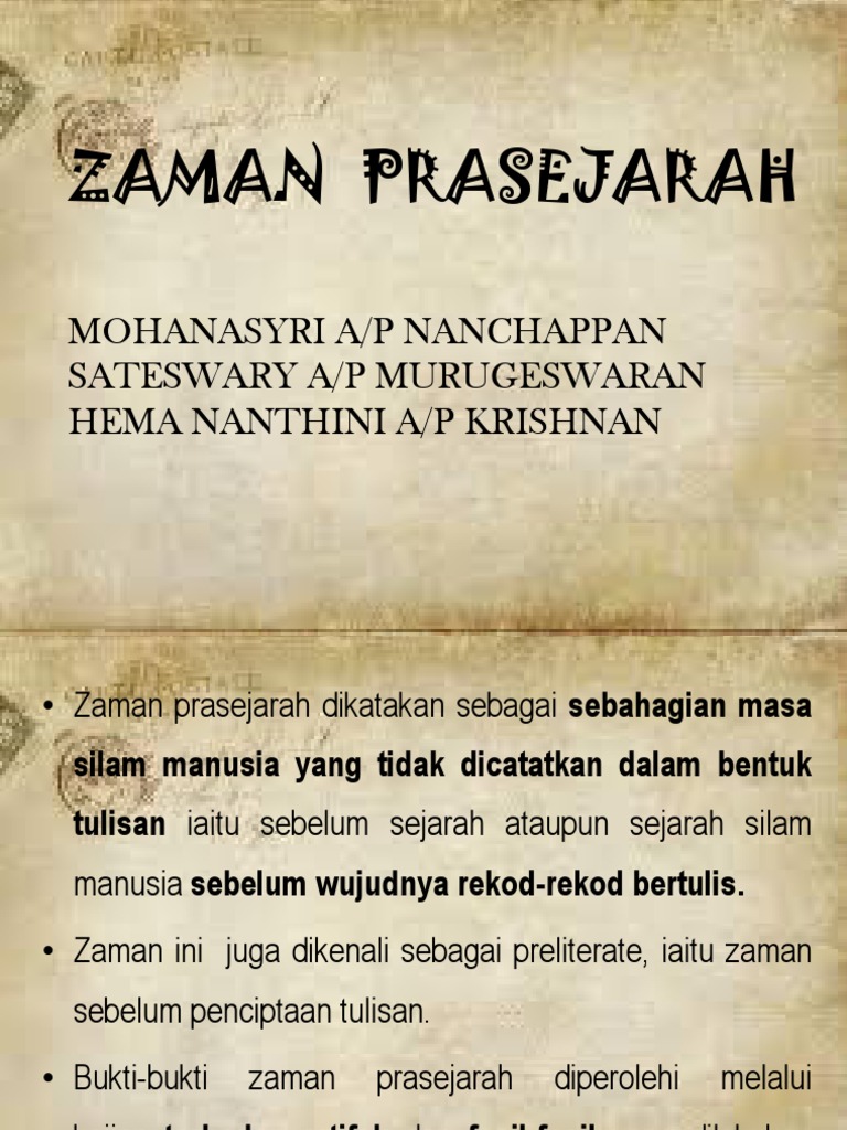 Inilah teras yang dapat menentukan ketahanan kewujudan ketamadunan bangsa brunei. Masa ini lebih sulit dipelajari dari masa sejarah setelah penemuan tulis menulis karena pada masa ini belum ada sistem aksara tersebut sehingga tidak ada peninggalan tulisan seperti prasasi atau kitab kuno. 1 see answer.