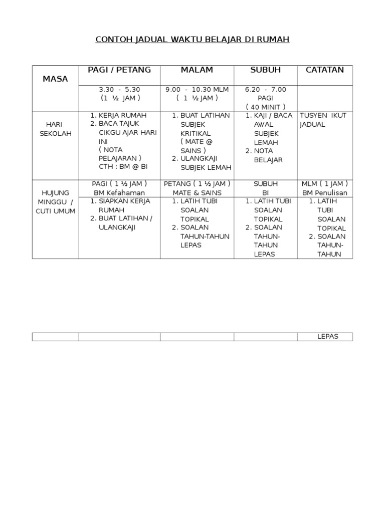 2 1 1 adakan jadual belajar sendiri di rumah dan ibu bapa adalah penyelia kepada jadual pelajar sama ada ia dipatuhi atau sebaliknya. 2 1 2 bagi pelajar yang akan menghadapi peperiksaan yang besar seperti pmr atau spm belajar antara 21 jam hingga 30 jam seminggu adalah memadai tidak termasuk masa membuat kerja rumah home work. Terutama bagi siswa sekolah smp sma ataupun mahasiswa. Kemendikbud tengah merancang penyederhanaan kurikulum yang sesuai dengan konteks pembelajaran jarak jauh pjj agar berjalan lebih efektif di.
