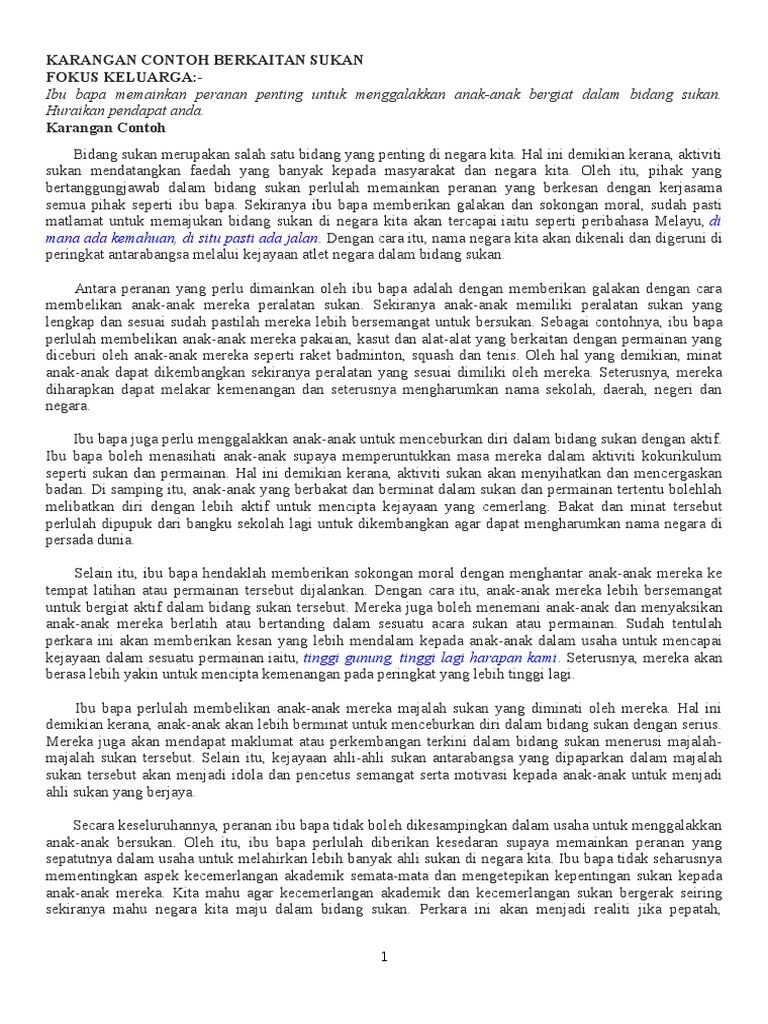Karangan sukan pilihan anda. Sediakan laporan itu selengkapnya. Sebagai contoh sukan bola sepak di benua eropah dan sukan bola keranjang di amerika syarikat yang menjana keuntungan daripada hak hak penyiaran di televisyen dan media massa. Karangan spm langkah langkah untuk memajukan mutu sukan negara malaysia mutu sukan negara sudah jauh berubah berbanding dengan era 60an atau 70an pelbagai pihak mula mempamerkan rasa tidak senang mereka dengan situasi sebegini. Peribahasa dan cogan kata peribahasa perpaduan kaum.