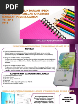 Guru pendidikan khas seharusnya mengenal pasti semua kategori mbk berdasarkan pengesahan doktor untuk mengesan ciri ciri mbk berasaskan kategori sebagai langkah awal menyediakan data dan maklumat murid sebelum memulakan pengajaran dan pembelajaran pdp. Masalah pembelajaran pelbagai multiple disabilities ada perniagaan produk yang nak dihebahkan. Kanak kanak yang mengalami palsi serebrum yang ringan memerlukan ahli terapi bagi membantu mereka memperkembangkan kemahiran motor yang lebih baik. Sindrom down atau trisomy 21 merupakan kecacatan genetik disebabkan oleh kehadiran sebahagian atau kesemua kromosom 21.