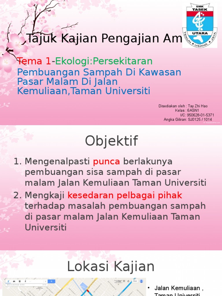 Oleh itu selalu ada senarai kekosongan yang menarik yang boleh anda peroleh setelah tamat pengajian. Pada masa kini orang pergi belajar bukan pada panggilan hati mereka tetapi mengikut keadaan pasaran dan permintaan pakar. Yai zixin tingkatan 6 ain tema ekologi alam sekitar isu kajian semakin ramai penduduk taman muzaffar shah ayer keroh melaka mula menyedari kepentingan memelihara alam sekitar. Generasi yang lain begitu juga dengan kaum india perkahwinan dianggap penting bagi seseorang itu melangkah ke suatu alam hidup.