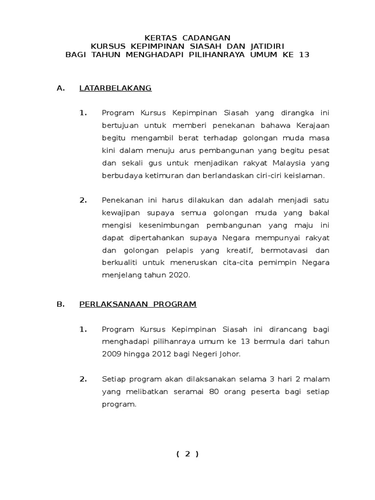 Kertas kerja penganjurankursus asas kepimpinan dan pengurusan organisasiperingkat felda bukit rokan utarapenganjur bersama. Kertas kerja kursus kepimpinan 2018 1. Program ini boleh dilaksanakan bagi membantu pengawas atau ketua dan penolong kelas yang baru dilantik untuk memahami tugas mereka dan tanggungjawab mereka. Memahami siapa pemimpin dan bagaimana membina penampilan pemimpin.