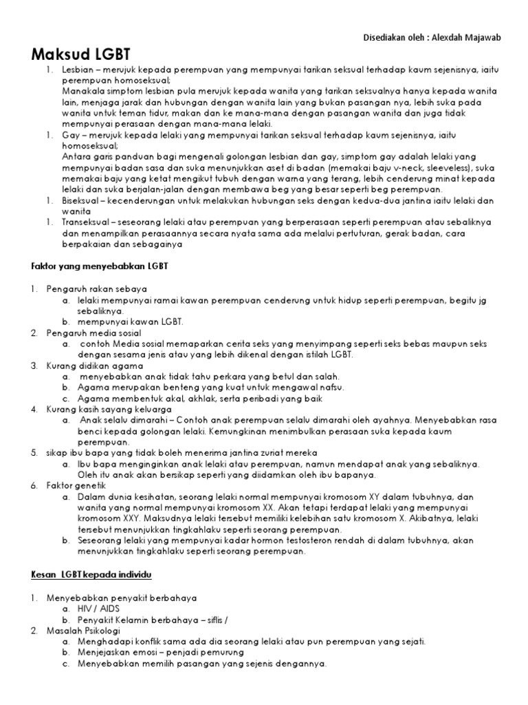 Walhal perkara ini bertentangan dengan pendirian islam yakni yang menentang gejala seperti ini. Siti nurmizani binti roslan siti salmiza binti bani yamin pendahuluan definisi umum penganalisis psiko mendefinisikan transeksual sebagai pshychotics sexual deviants dan gender deviants definisi l lesbian amalan hubungan songsang diantara wanita. 4 individu lgbt lehman thornwel. Tingkat penolakan dan penerimaan terhadap lgbt.