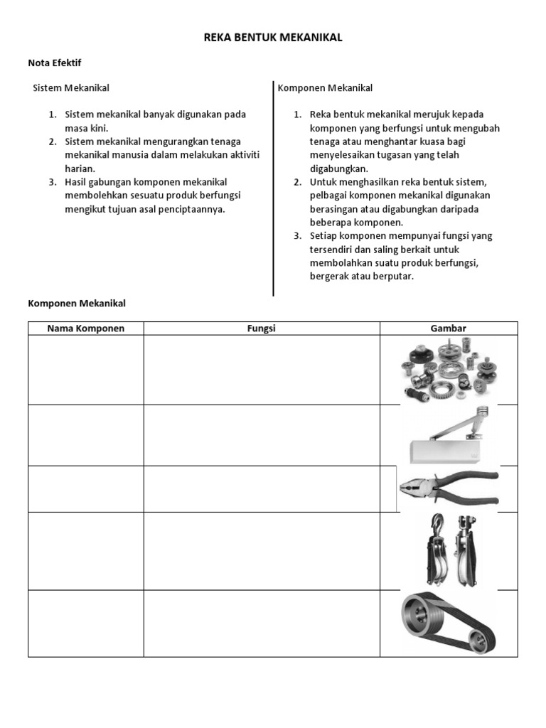 Koleksi soalan dan latihan reka bentuk dan teknologi rbt tingkatan 2 jawapan. Reka bentuk mekanikal tingkatan 2 draft. 2 2 1 mengenal pasti komponen mekanikal reka bentuk mekanikal merupakan satu proses kawalan dan permindahan tenaga melalui pegerakan mekanikal seperti tuas gear mesin atau jentera 2 2 1 mengenal pasti komponen mekanikal komponen yang terlibat adalah seperti berikut. Reka bentuk elektronik tingkatan 2 reka bentuk akuaponik tingkatan 2 bab 2 2 reka bentuk mekanikal mengenalpasti kaedah reka bentuk pengiklanan.