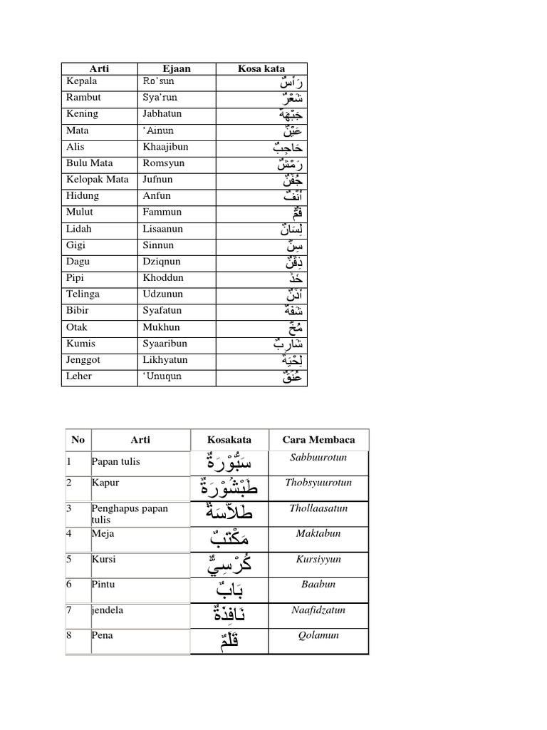 Kamus indonesia arab tips pencarian gunakan kata dasar. Pada uraian di bawah ini kami disajikan nama nama anggota tubuh dalam bahasa arab tulisan arab latin atau cara pengucapan nya dan artinya dalam bahasa indonesia lengkap dengan gambar agar lebih mudah dipahami terutama bagi anak anak. Belajar bahasa arab anggota tubuh dimulai dari bagian wajah badan dan juga anggota gerak.