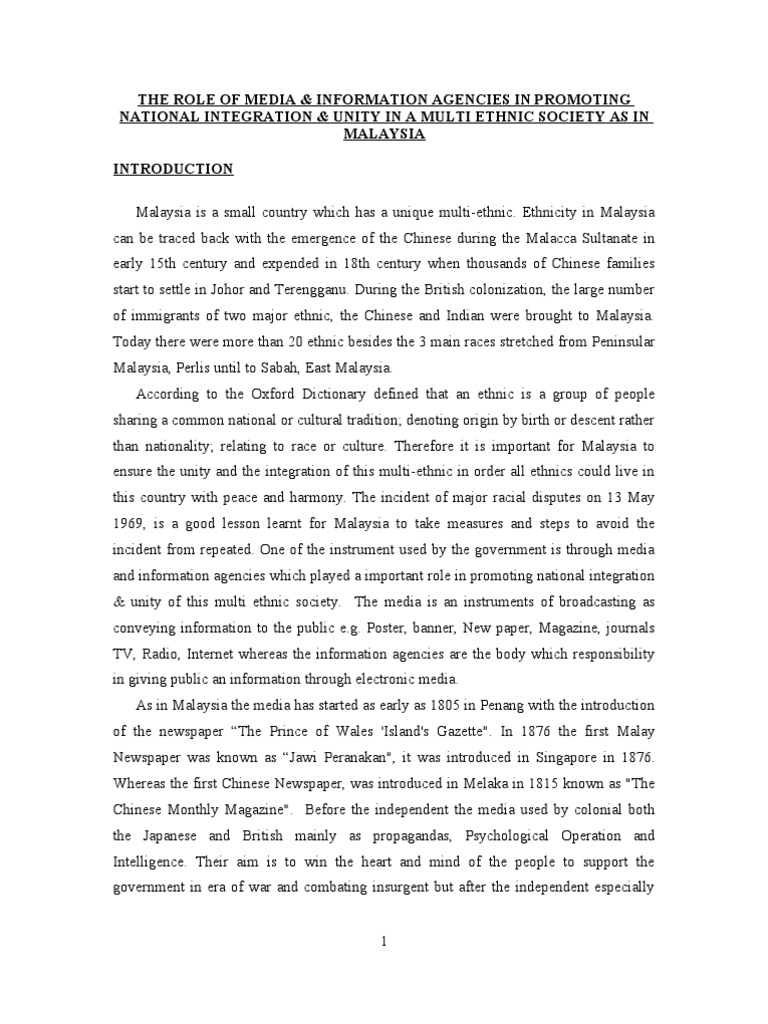 How to create unity and national integration in a multi racial society like malaysia essay 2202 words 9 pages. Top papers essays multicultural education national integration policy in malaysia and the national identity of young malaysians. 3 1 establishment of the department of national unity and national integration. It refers to the feeling of unity and oneness among the citizens of a country.