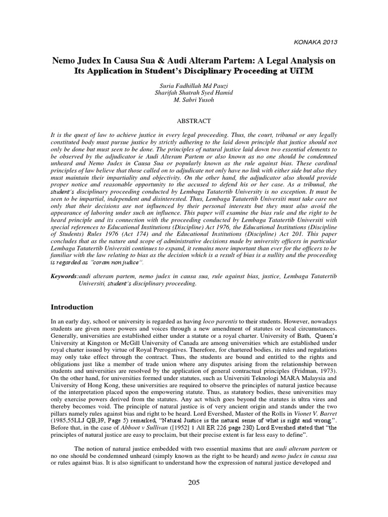 2 audi alteram partem hear the other side or both sides must be heard or no man should be condemned unheard or that there must be fairness on the part of deciding authority. Nemo judex in causa sua legal maxim by vikash kumar 2. Hence the appeal procedure in section 132 of the act to enable an. It is one of the cardinal rules of natural justice that no one should act as a judge a case in which they have a personal vested interest.