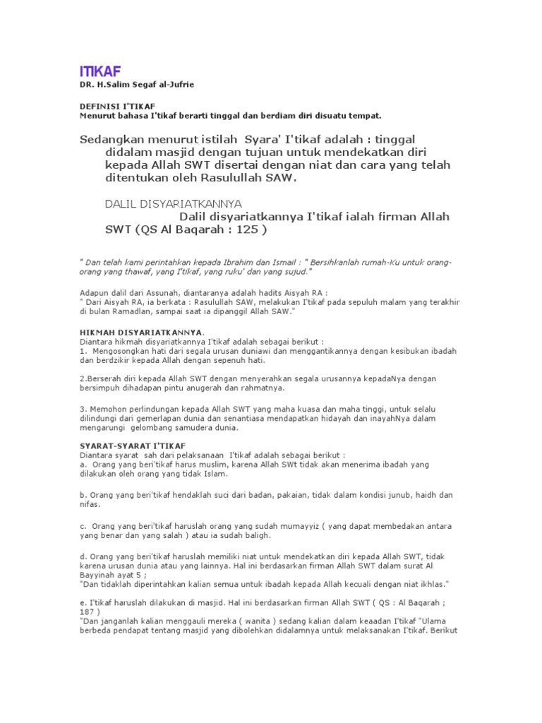 Disebutkan bahwa ada empat posisi bangunan menara masjid. Jika posisinya demikian maka para ulama sepakat mengenai kebolehan dan keabsahan i tikaf di dalamnya. Saya niat i tikaf karena iman dan mengharap akan allah karena allah ta ala berdiam diri di dalam masjid dengan memperbanyak dzikir tafakur membaca doa tasbih dan diutamakan memperbanyak membaca al quran 다운로드. Yakni niat itikaf dan tinggal berdiam diri di masjid.