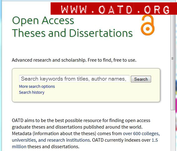 Open access theses and dissertations oatd. Oatd indexes about the first 30 pages of some theses in order to show search hits but in no case does oatd index or store the full text of the paper. Metadata information about the theses comes from over 1100 colleges universities and research institutions. Open access theses dissertations oatd ucsb library. About oatd our faq.