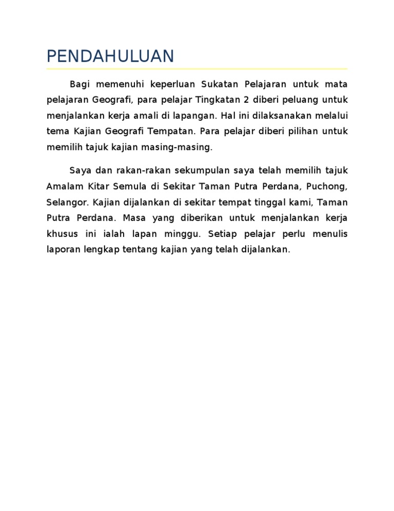 Saya memilih taman setiawangsa sebagai kawasan kajian saya kerana setiawangsa merupakan sebuah kawasan kediaman dan komersil yang sedang membangun di tengah bandar raya kuala lumpur. Contoh penulisan pendahuluan kerja kursus geografi 2013 pendahuluan. Contoh folio kerja kursus geografi. Saya dan rakan rakan saya telah memilih tajuk pengangkutan awan di taman daya johor bahru johor.