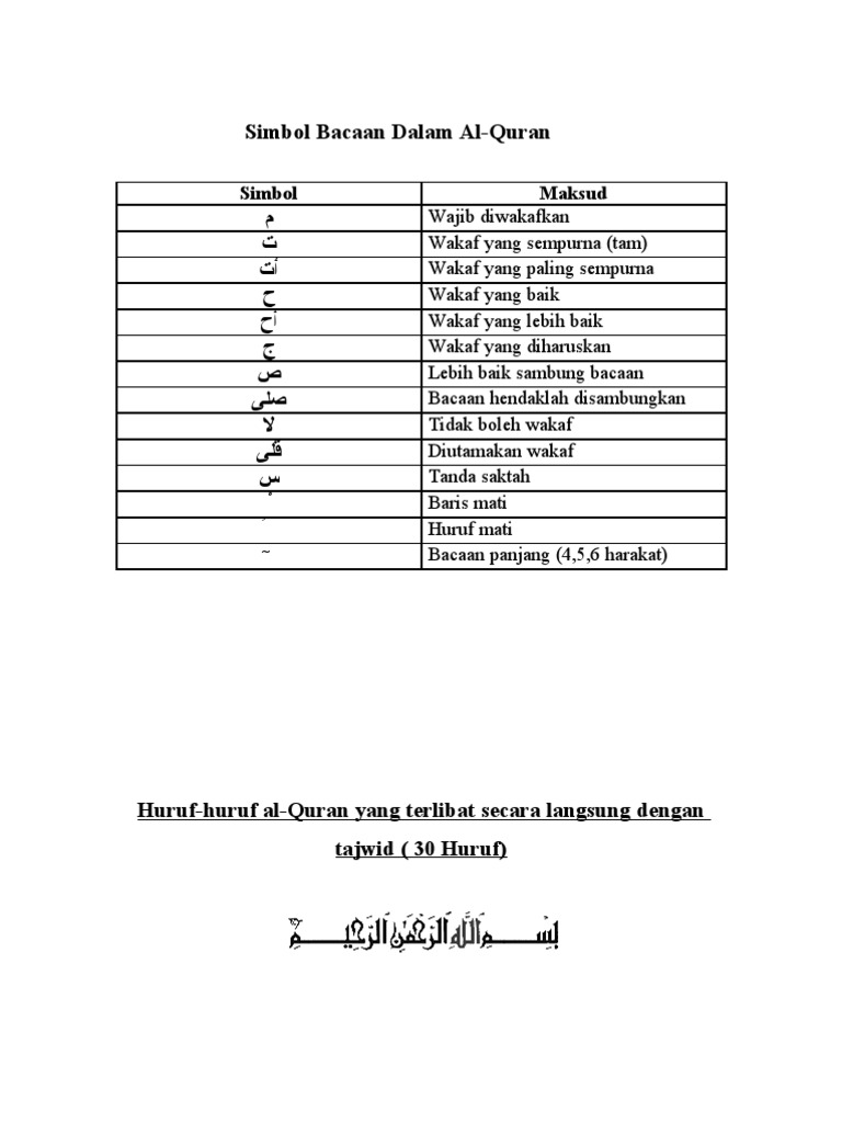 Simbol bacaan dalam al quran. Di dalam al quran ada 4 tempat bacaan yang unik sedikit berbanding bacaan biasa. Akan panjang pendek berhenti atau tidak dan seterusnya. Memberhentikan bacaan seketika ataupun terputus suara nafas di hujung atau di akhir ayat. Jangan main langgar je.