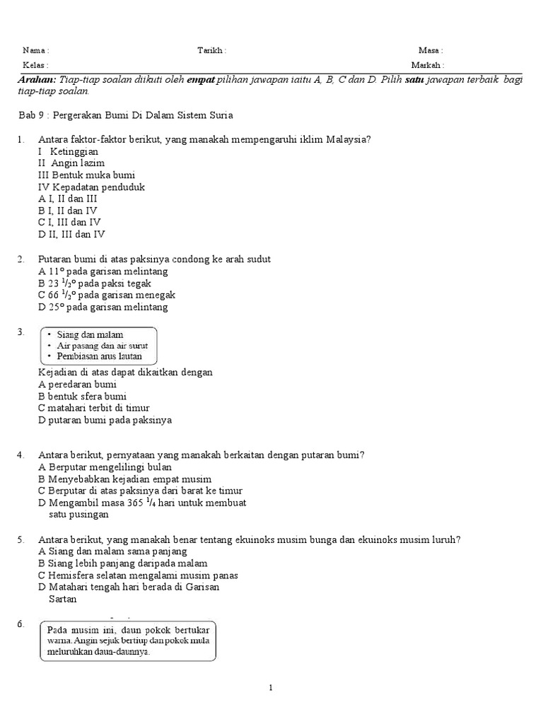 Latihan Gei Ting 1 Unit 9 Pergerakan Bumi Di Dalam Sistem Suria