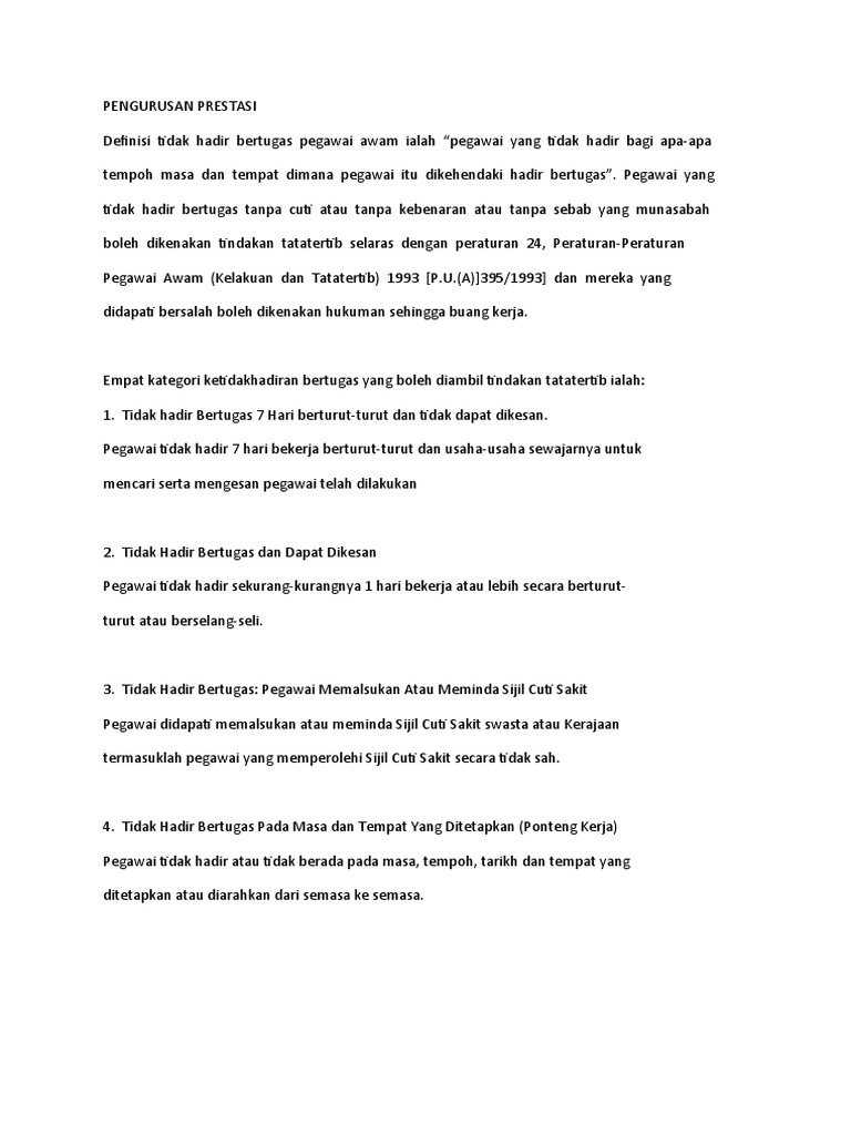 Pegawai kelamatan mengetahui akan hal pekerja ditahan polis dan fakta ini disampaikan kepada pengurus pada hari yang sama 20hb. Panduan pengurusan staf tidak hadir bertugas ms 2 proses aktiviti tindakan sebaik sahaja pekerja gagal hadir bagi tempoh tiga 3 hari sama ada secara berturut turut atau berselang seli. Hal ini sesuai dengan undang undang nomor 13 tahun 2003 tentang ketenagakerjaan pasal 168 ayat 1 yang menyatakan bahwa pekerja buruh yang mangkir selama 5 hari kerja atau lebih berturut turut tanpa keterangan secara tertulis yang dilengkapi bukti yang sah dan telah dipanggil oleh pengusaha 2 kali secara patut dan tertulis dapat diputus hubungan kerjanya karena dikualifikasikan. Inilah sanksi bagi pengusaha jika telat bayar thr karyawan.