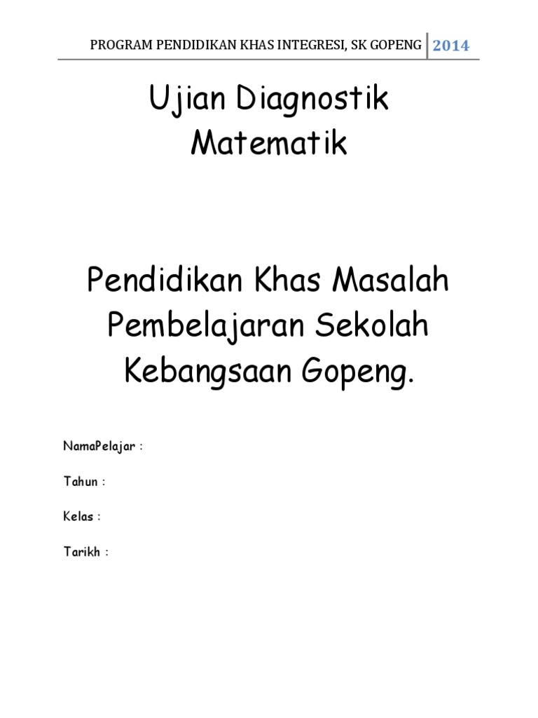 Ujian diagnostik pendidikan khas masalah pembelajaran. Home ujian diagnostik bm dan mt pemulihan ujian diagnostik bm dan mt pemulihan ujian diagnostik bm dan mt pemulihan. Jadi downloadlah analisa ini dan. Pengurusan pendidikan khas masalah pembelajaran. Panduan perkembangan pembelajaran murid.